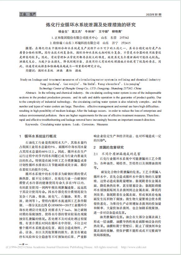 50、煉化行業循環水系統泄漏及處理措施的研究